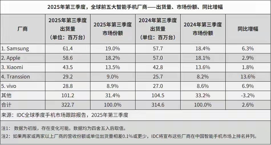 赛道协同效应很快显现,在手机业务上,小米14系列奠定高端化基础,2025年Q2品牌激活量登顶国内第一,Q3全球出货量进一步增至4350万台,以13.5%的市场份额稳居全球第三。