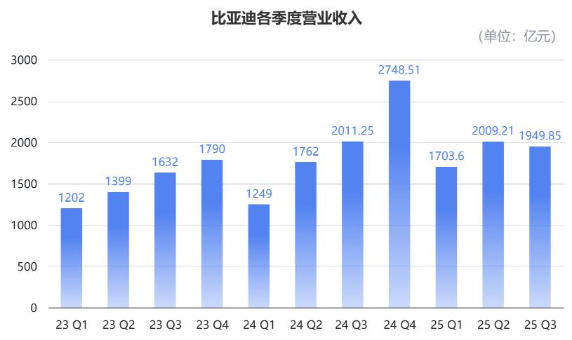 最新披露的三季度财报里,比亚迪的增速进入“缓冲”: