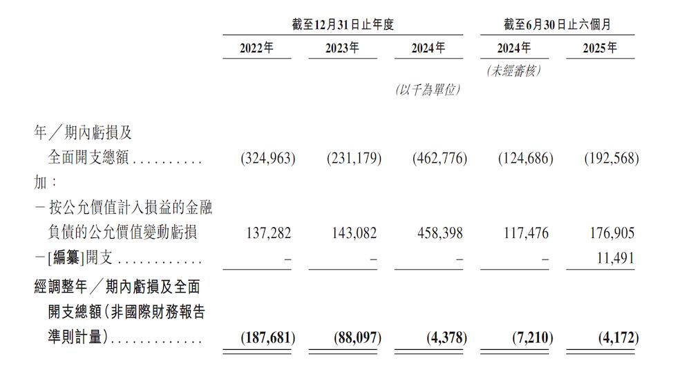 同期,其经调整亏损及全面开支总额(非国际财务报告准则计量)为1.88亿元、0.88亿元、438万元、417万元。