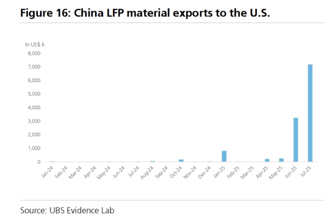 中国对美国的磷酸铁锂材料爆炸式增长