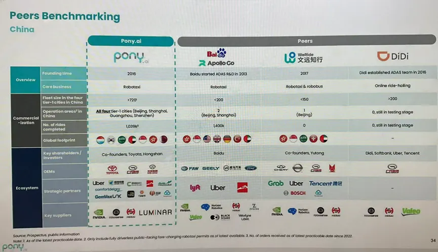 提及在中国市场的商业化运营区域时,小马智行提供的对比内容显示,四大超一线城市中,小马智行覆盖了北、上、广、深,百度只有北京和上海,文远知行则只有北京。