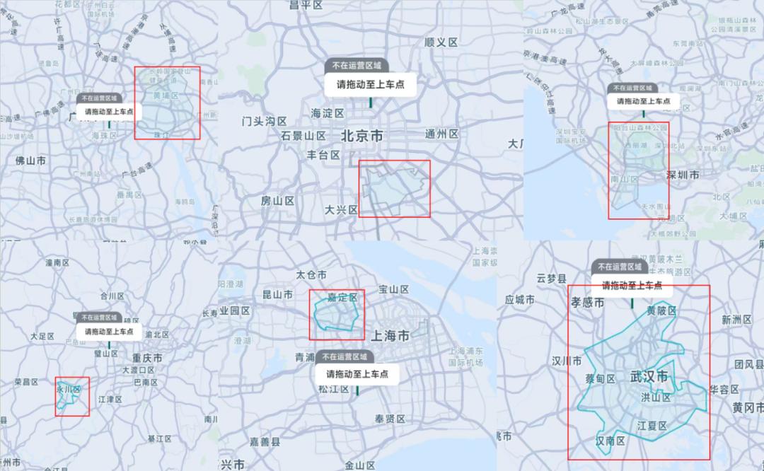 但在其他城市,萝卜快跑的运营区域长期未能扩张,而是停留在市郊区域,如上海嘉定区、北京亦庄区域、重庆永川区等。这些区域的普遍特征是车少人稀,道路规整利于无人车展开运营,缺点则是订单量相对较少。当然,小马智行、文远知行也面临类似的阻力。