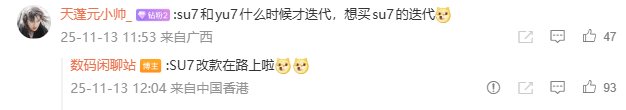 IT之家 11 月 13 日消息,博主 @数码闲聊站 今日在微博评论区透露,小米 SU7 改款车型在路上。