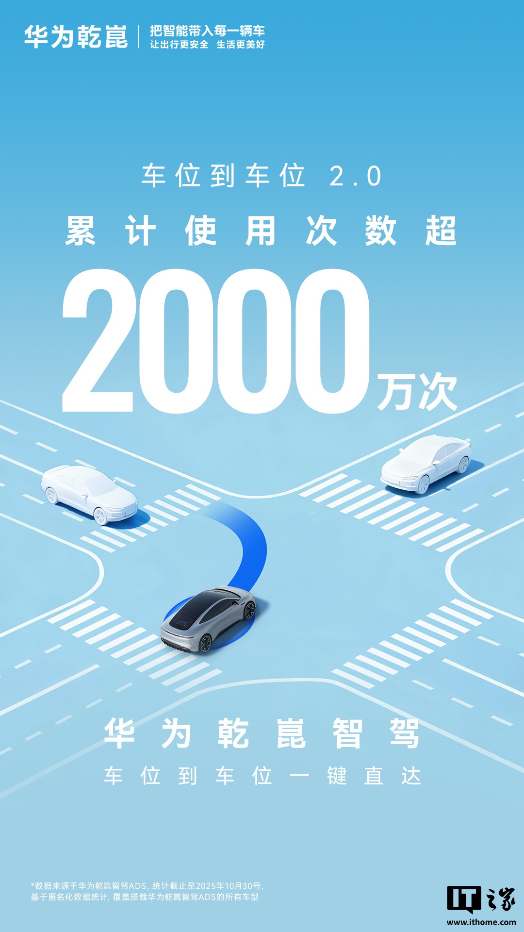 《华为:乾崑智驾 ADS 车位到车位领航辅助 2.0 累计使用超 2000 万次》