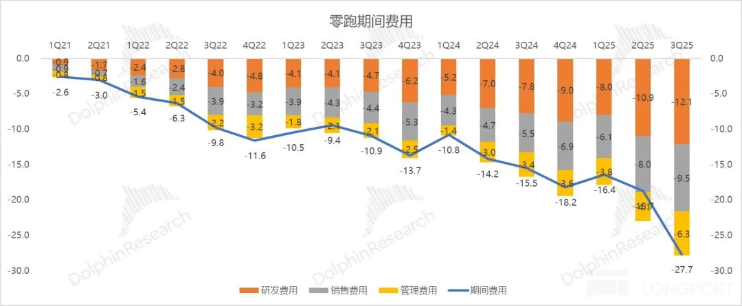 4. 但三费仍然在加大投入,主要因为智能化和渠道扩展投入不断增加:本季度零跑三费都还在加大投入状态,其中研发费用 12 亿,环比上行 1.2 亿,主要由于超级增程车型和智能化的投入持续加码,公司之前计划在年底前实现基于端到端的城市 NOA 能力。