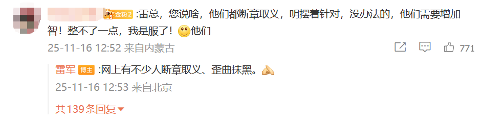 对此,雷军也指出,“网上有不少人断章取义、歪曲抹黑”,并强调,“安全是基础,安全是前提”、“安全高于一切”。