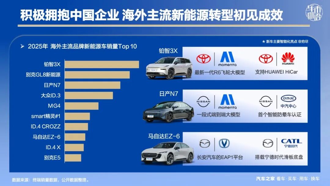 与之相似的还有日产N7,这是日产天演架构下的首款车型,上市18天大定突破1万台。2025年累计销量排名第三。10月底,日产N7迎来了第二次大版本OTA,新增了城市记忆领航辅助驾驶和记忆泊车辅助两大功能,以及20+项智能座舱功能升级优化。开启新车大小定,OTA更新,召开用户大会等等。如今,海外主流新能源车可谓是越来越“新势力风”了。