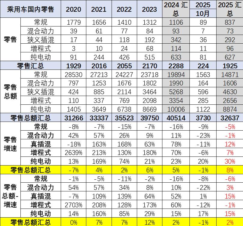 乘联分会的数据显示,2023年、2024年、2025年1月至10月的新能源车均价分别为18.3万元、17.1万元、15.9万元;其中,2025年10月,新能源汽车均价为15.6万元,较上一月的15.8万元又有所下滑。