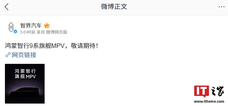 另外,鸿蒙智行旗舰 MPV 的官宣信息也被智界产品总监 @智界海蓝天 转发,进一步论证了新车将归属智界品牌。