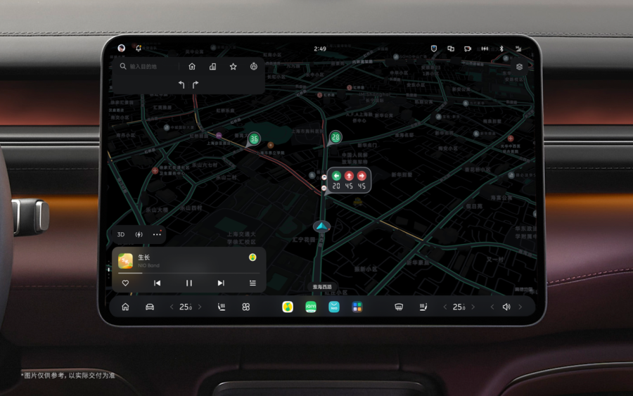对于 ET9,新增了后排防晕车模式,功能开启后,将在屏幕边缘附近显示圆点动效,会随车辆的运动姿态进行变化,以减小感知冲突,来缓解后排人员乘坐眩晕感。