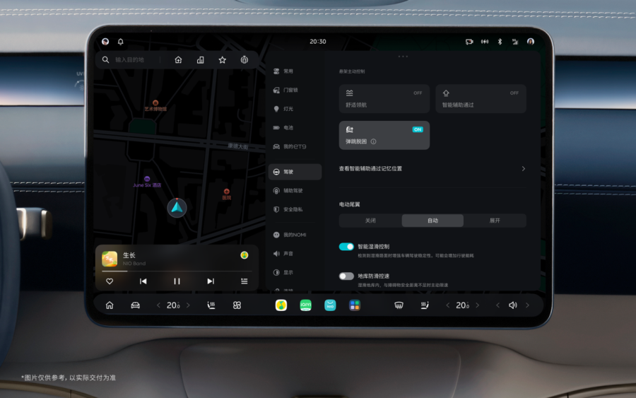 该功能可通过车机【设置】-【驾驶】-【弹跳脱困】进行开启,需注意,功能激活 1 分钟后会自动退出。