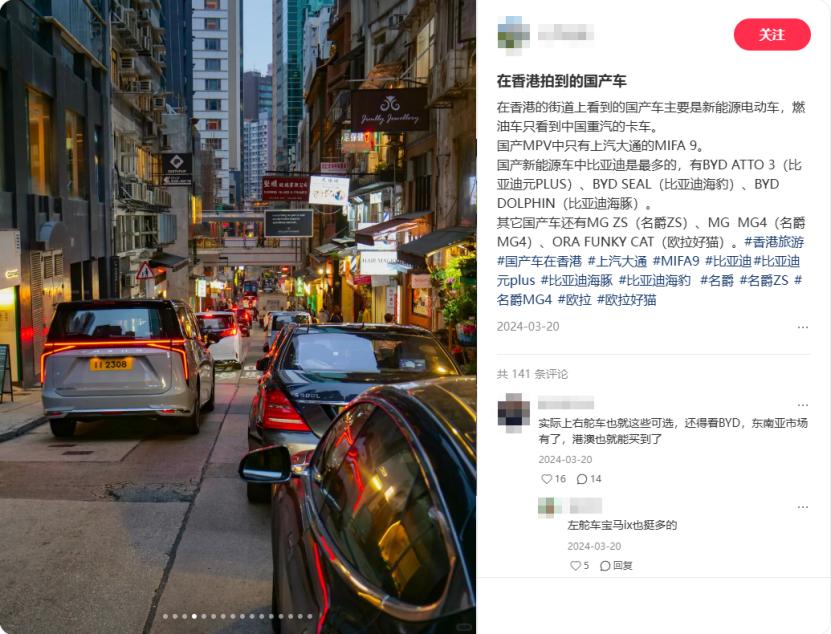 国产电动车在香港已经完成了从“市场占领”向“心智占领”的转变。(图/小红书截图)