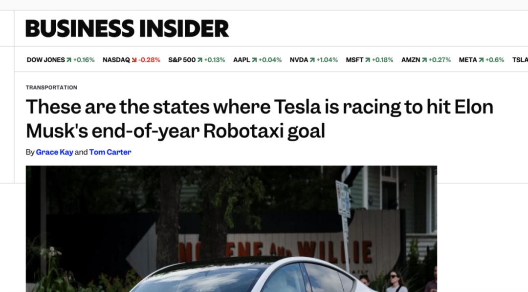 外媒报道特斯拉正在美国多州加速推进Robotaxi计划,来源:《商业内幕》