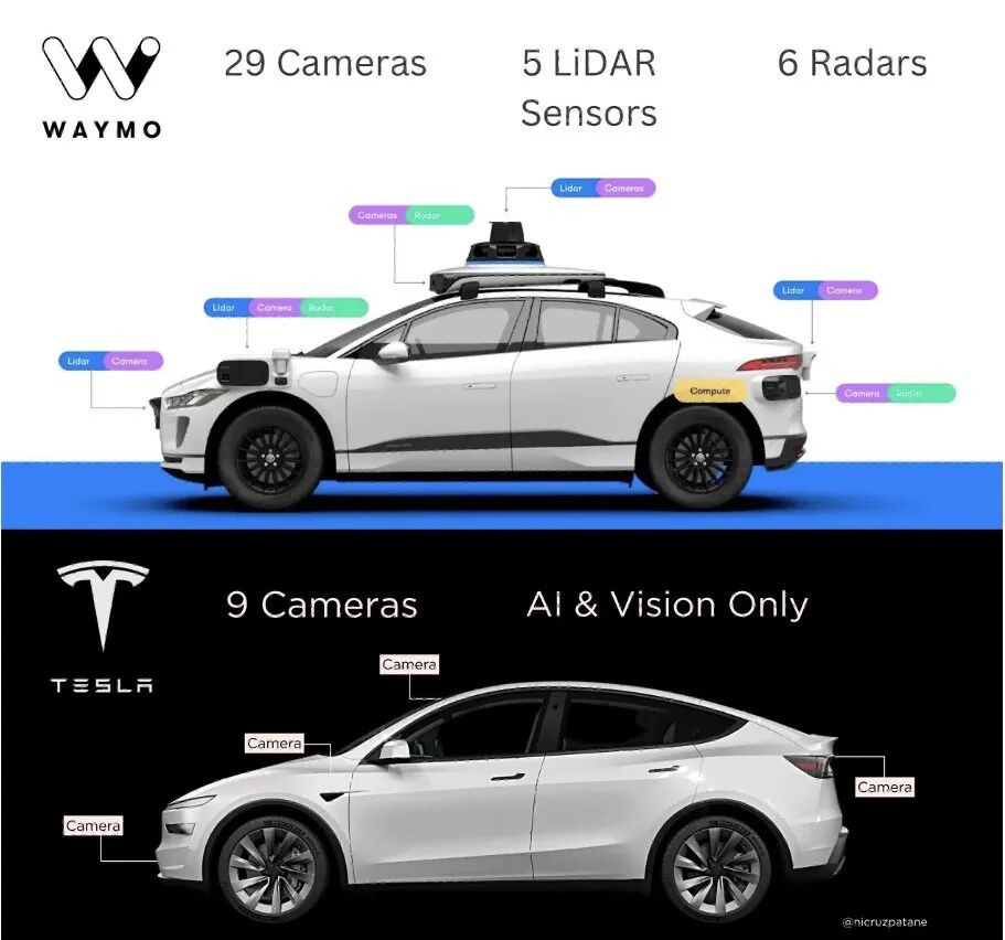 Waymo的多传感器方案与特斯拉纯视觉方案对比