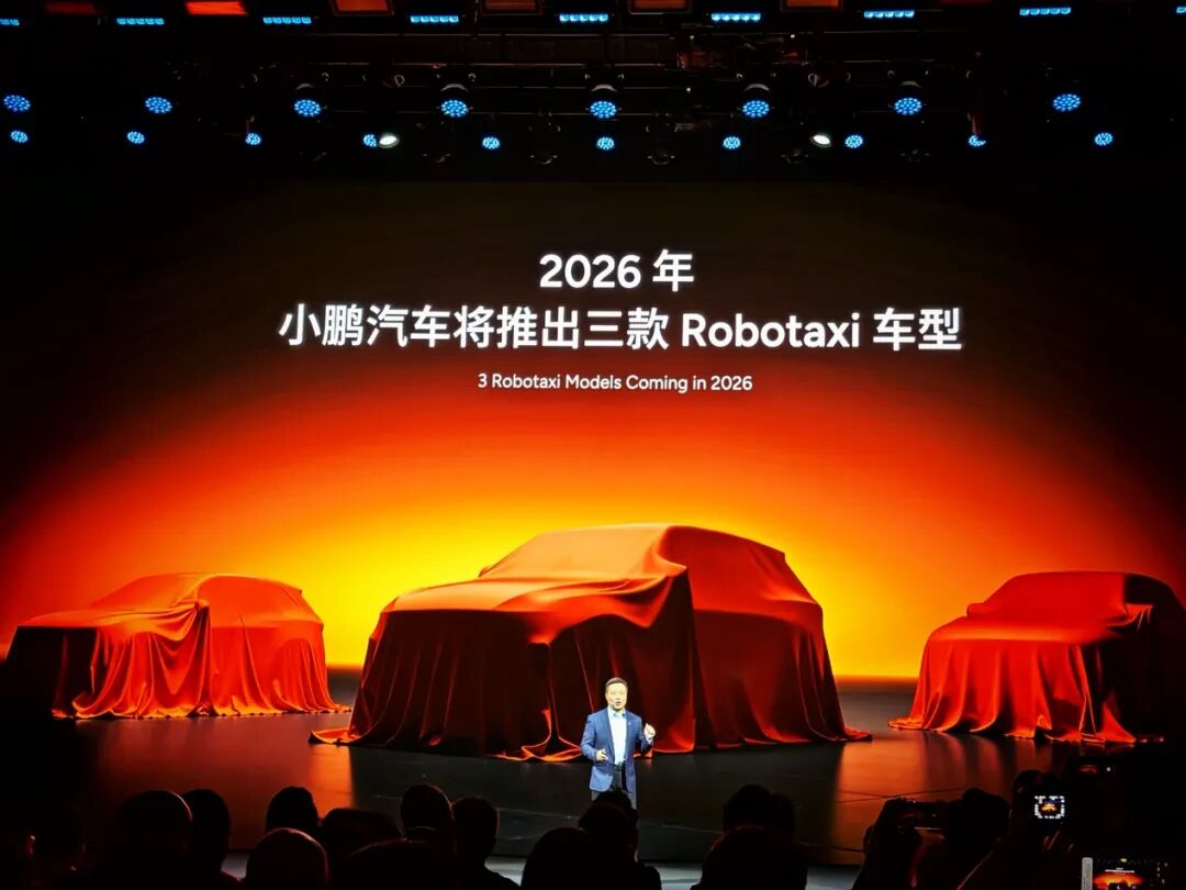 11月5日,在“2025小鹏科技日”上,中国造车新势力小鹏汽车宣布将在2026年正式推出三款Robotaxi车型,同时将启动Robotaxi试运营。