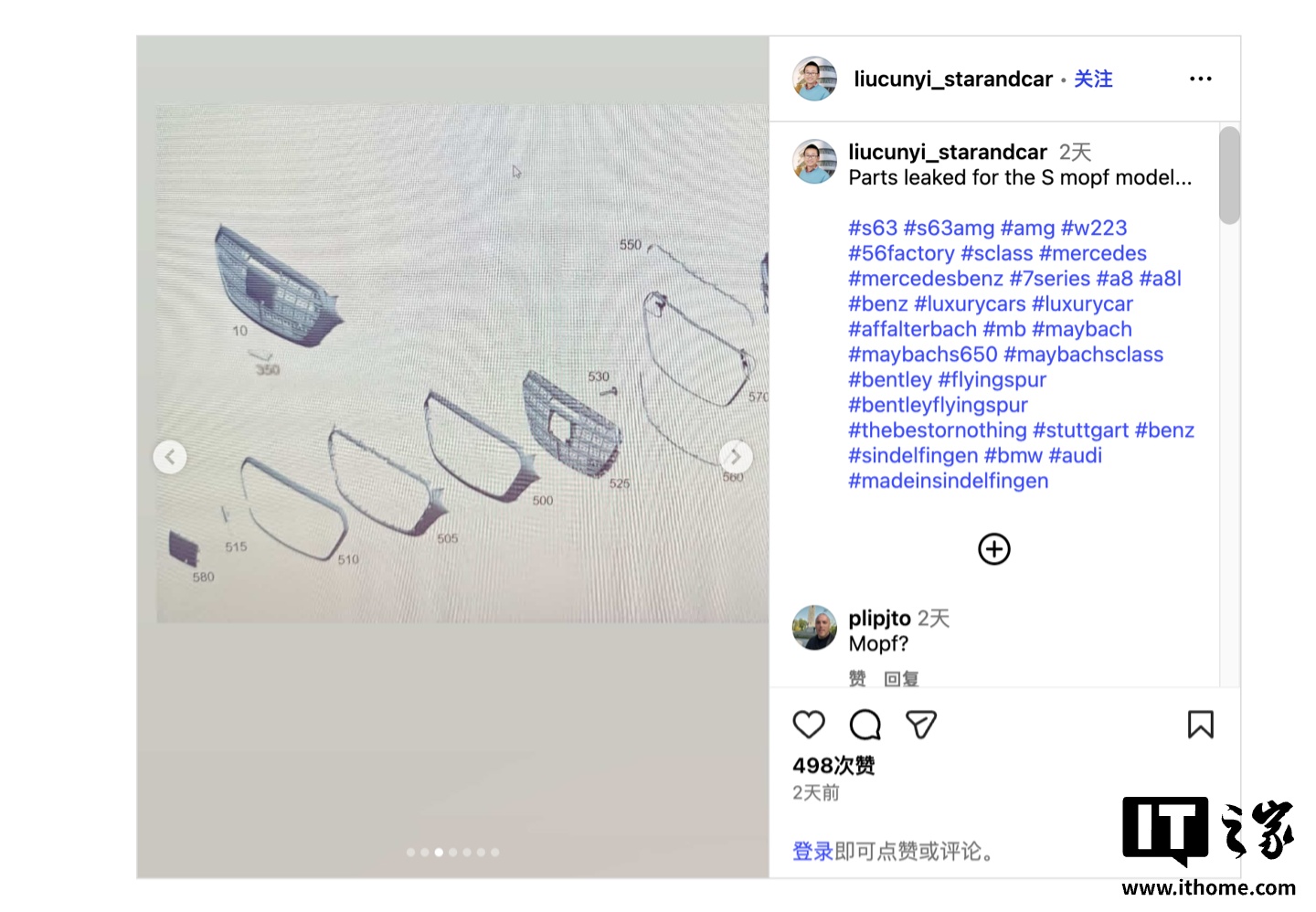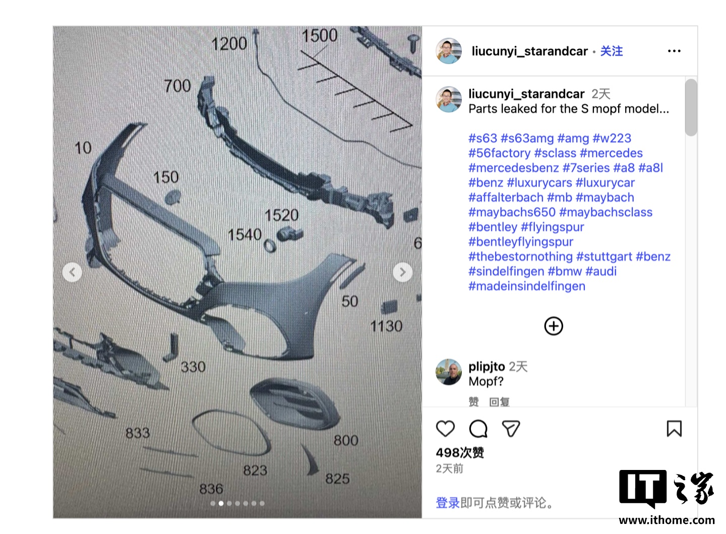 IT之家 11 月 25 日消息,近日,博主 @liucunyi_starandcar 在 Instagram 上分享了一些疑似新款奔驰 S 级生产零部件的图纸。
