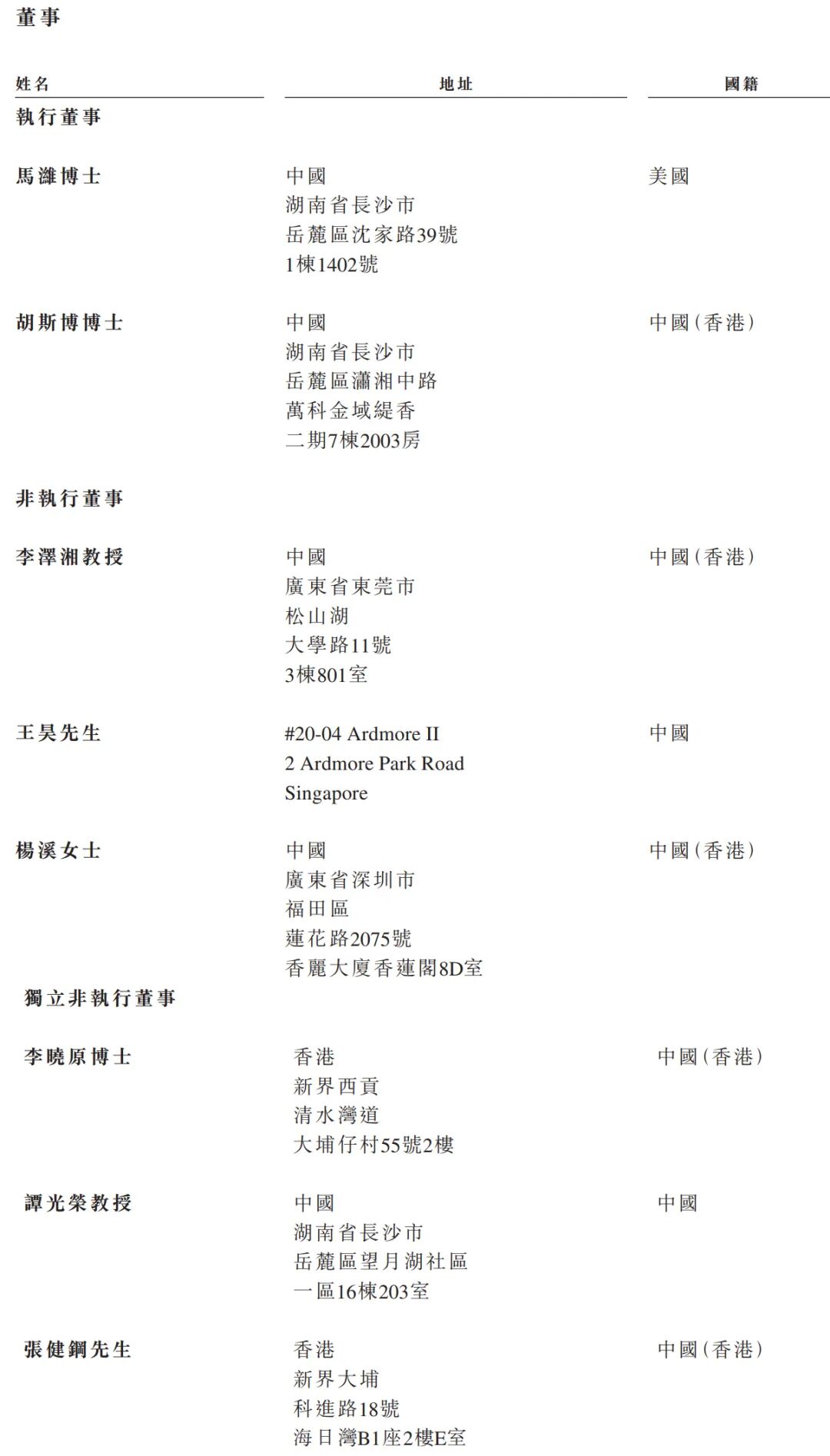 希迪智驾执行董事分别为马潍博士、胡斯博博士;非执行董事分别为李泽湘教授、王昊、杨溪女士;独立非执行董事分别为李晓原博士、谭光荣教授、张健钢。