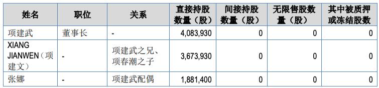 项氏家族的核心成员包括父亲项春潮以及他的两个儿子项建武和项建文。项氏家族不仅依靠直接持股,还通过一致行动协议扩大其控制范围。项春潮与另外23位股东结成一致行动人。
