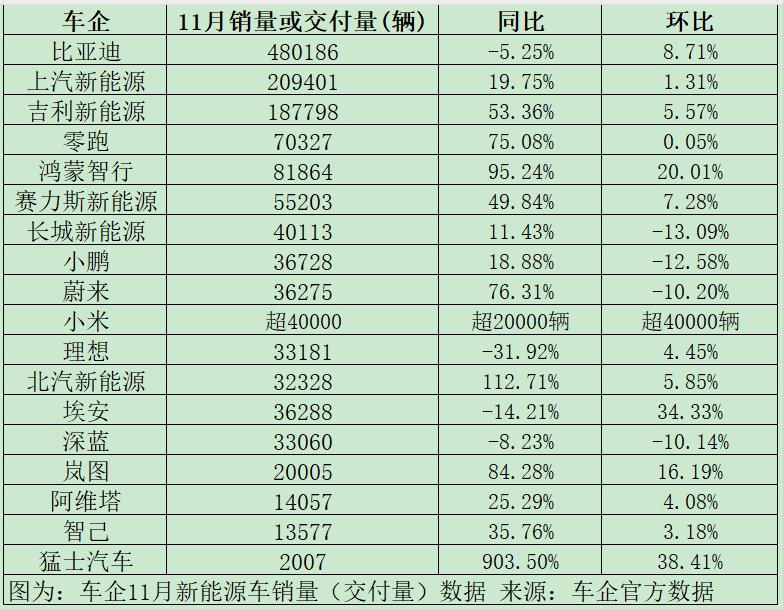 车企11月“翘尾”行情降温,比亚迪月度销量仍未超50万辆