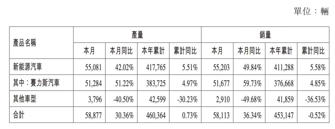 图源 / 赛力斯11月产销快报