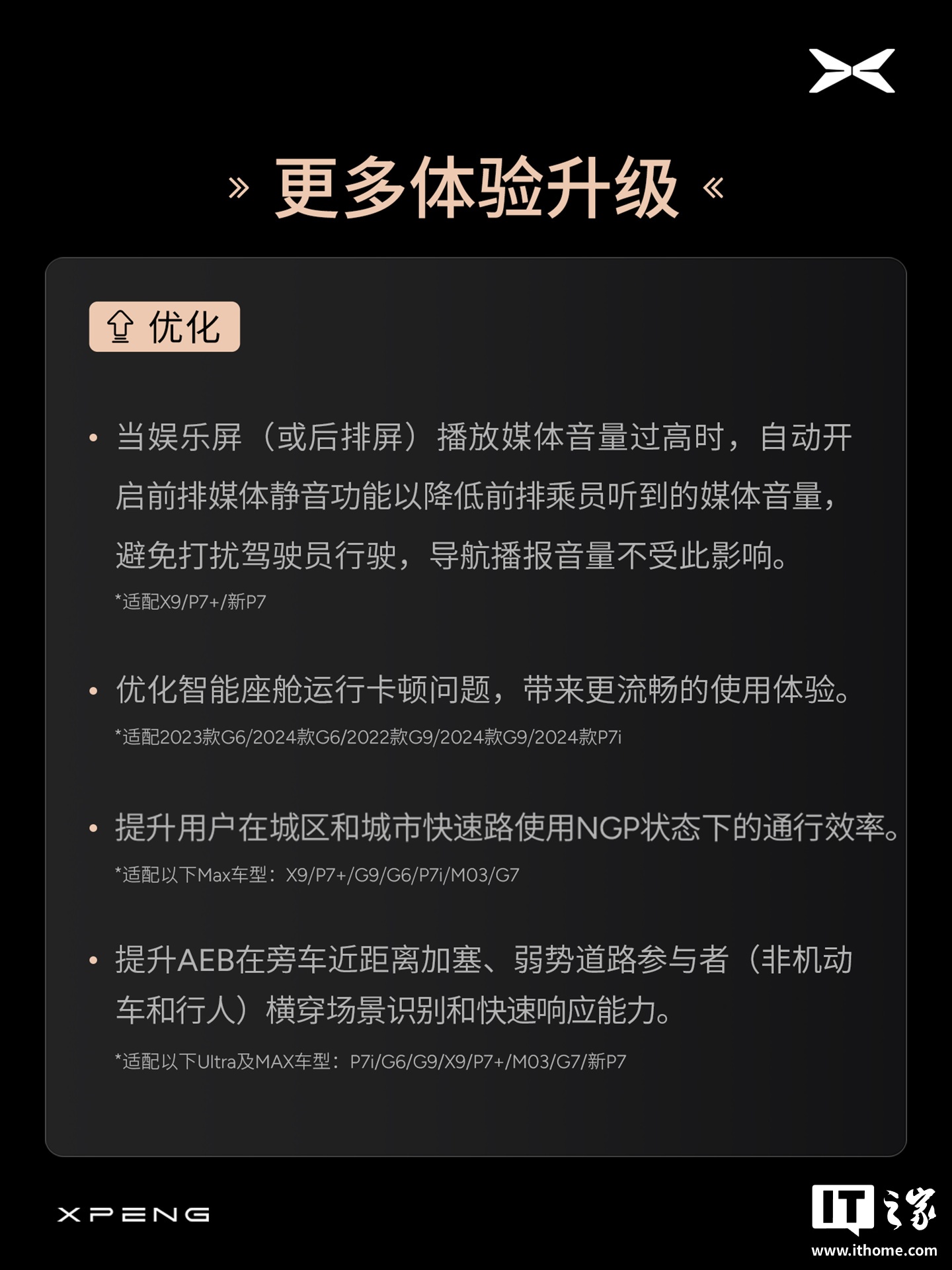 IT之家整理小鹏 AI 天玑 XOS 5.8.5 更新内容如下: