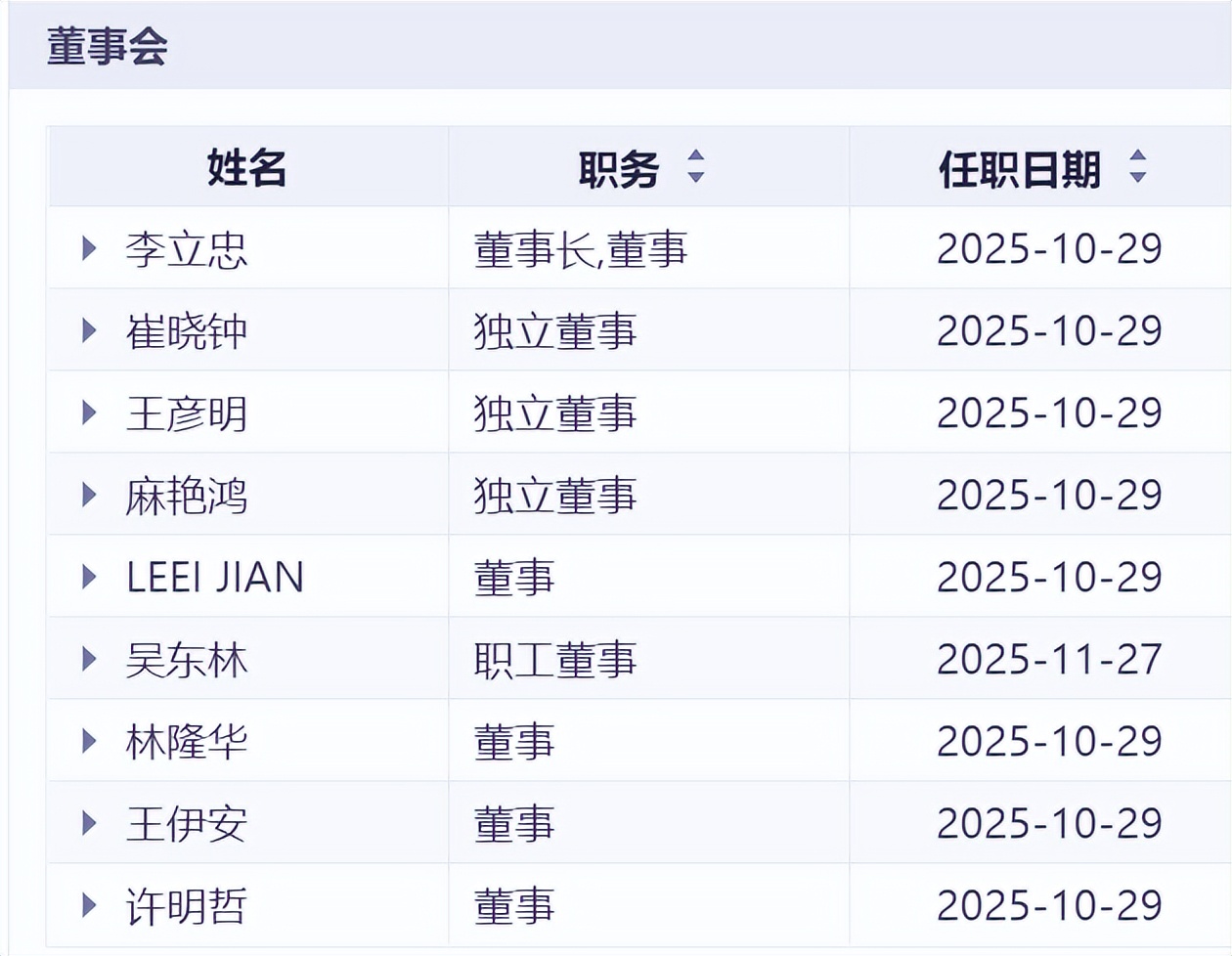 新任董事长李立忠,1963年10月出生,是国务院津贴专家、正高级工程师。2002年7月至2023年10月,曾就职于奇瑞汽车股份有限公司,期间担任奇瑞汽车股份有限公司执行副总经理、奇瑞新能源汽车股份有限公司董事长、奇瑞汽车股份有限公司大连分公司董事长兼总经理、芜湖埃科泰克动力总成有限公司董事长、安徽海行云物联科技有限公司董事长、瑞鹄汽车模具股份有限公司董事职务。