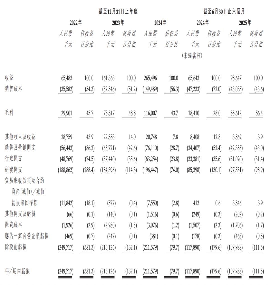 营收方面,一路上涨。2022年至2024年,公司营业收入从6548万元增长至2.65亿元,复合增长率显著,年均复合增长率约110%。2025年上半年实现营收9865万元。