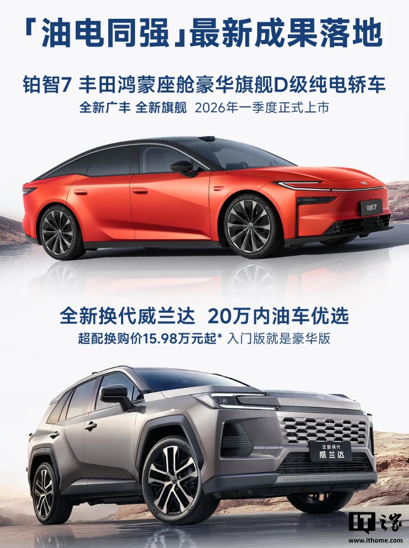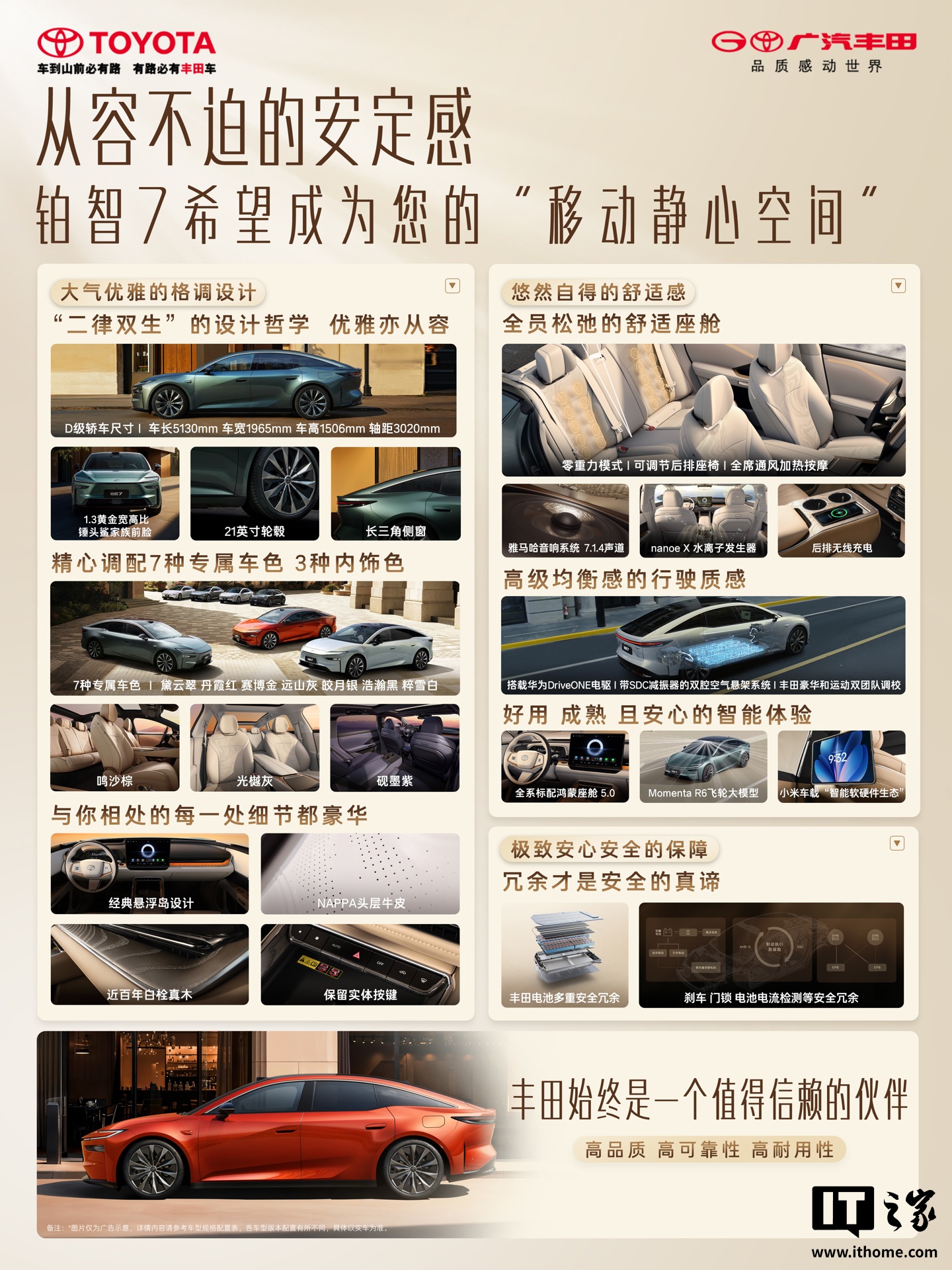 广汽丰田还宣布,在 2025 广州车展公开亮相的铂智 7 纯电轿车计划于 2026 年第一季度正式上市。
