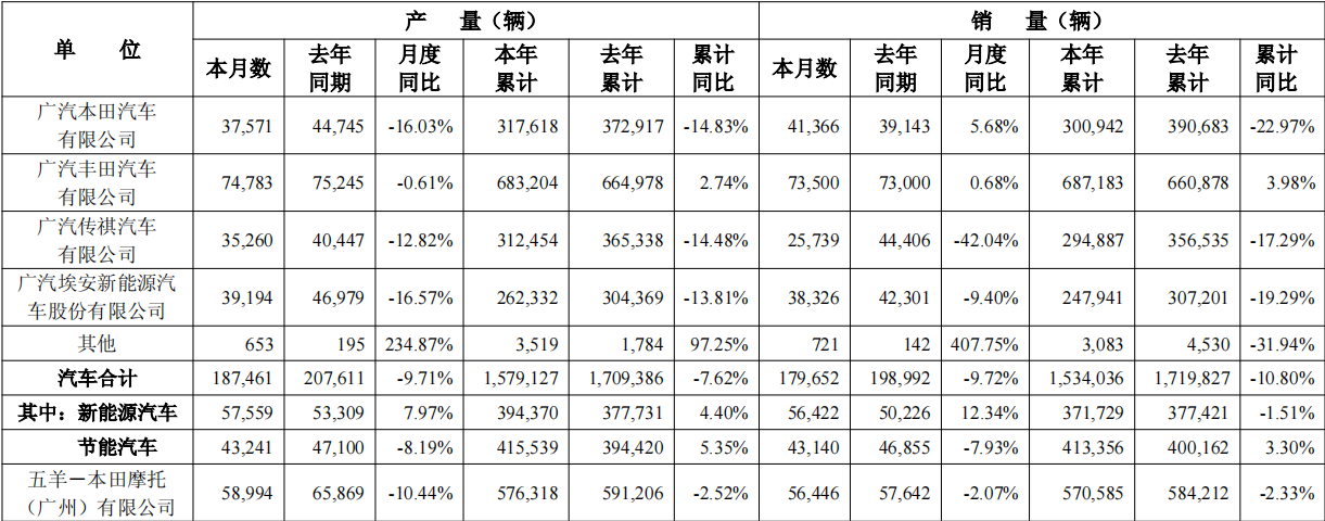 3、广汽集团11月销售汽车17.97万辆,同比下降9.72%