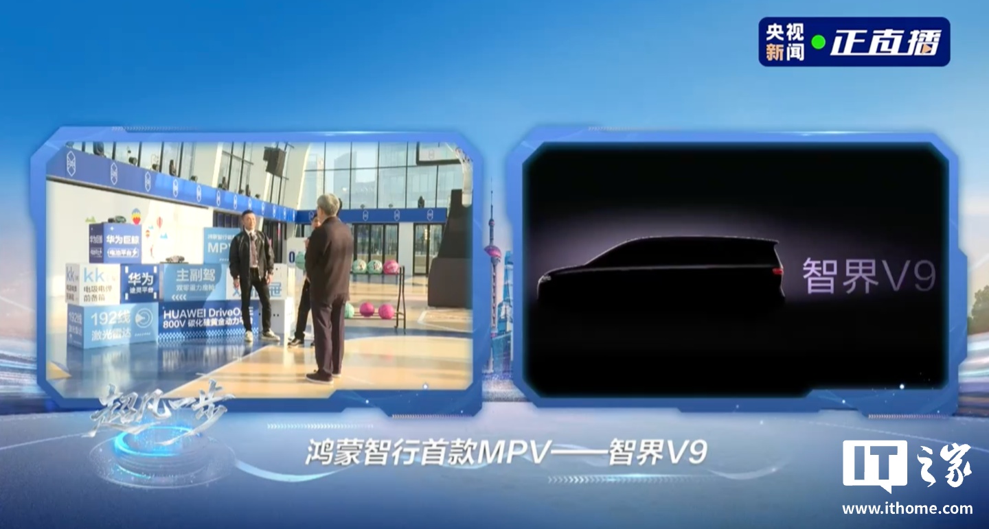 IT之家 12 月 9 日消息,在目前正在进行的鸿蒙智行央视新闻《超凡一步》节目中,鸿蒙智行旗下首款 MPV 智界 V9 正式官宣。