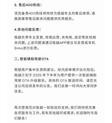 根据集度前述6月份发出的通知,极越计划于2025年下半年为用户提供一次智能辅助驾驶OTA升级服务。但是岁末已至,车主们尚未等来更新的通知。