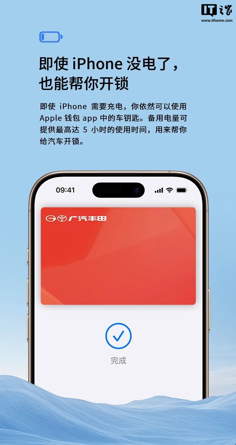 据介绍,车主将汽车钥匙添加到 Apple 钱包 App 中,靠近车门或是握住车门把手就可以解锁车辆,不用从包或口袋中掏出 iPhone,全程无需唤醒 Apple 设备或打开任何 App(支持 iPhone 无电解锁)。