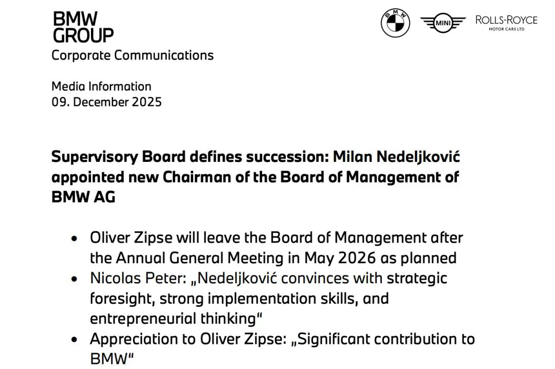因为宝马对董事会成员的大致年龄限制为60岁,齐普策本来在2024年就该卸任的,当时的齐普策不仅年龄到了,合同也是截至到2024年结束,但宝马集团监事会又是给齐普策硬续签了两年,延长到2026年。