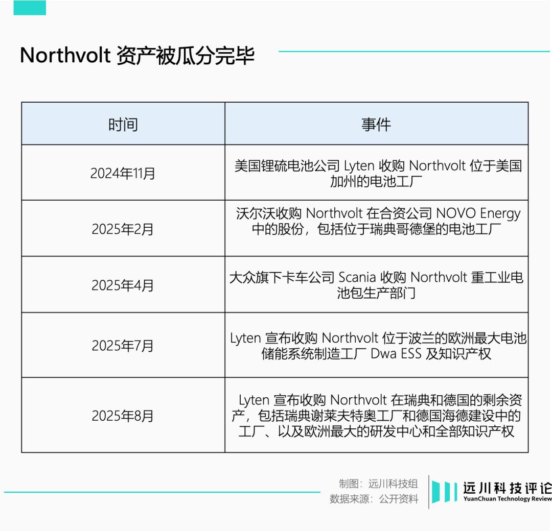 今年3月,Northvolt正式申请破产清算,仅剩的资产被美国锂硫电池企业Lyten打包带走。