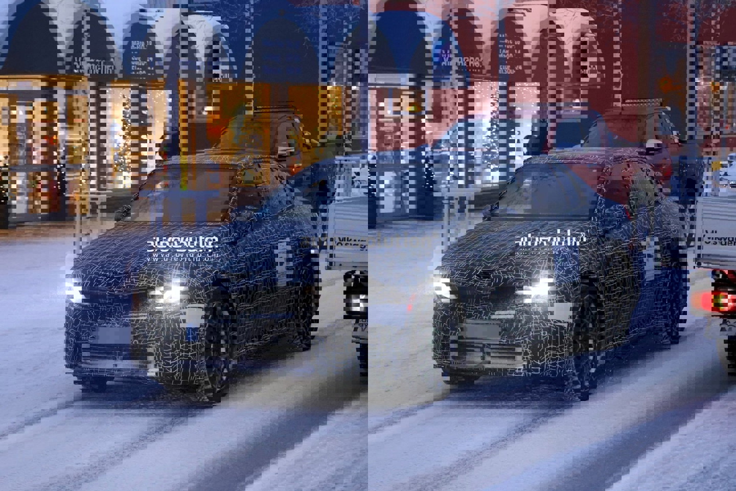 该媒体分享了一组在瑞典北部抓拍的路测图,展示了正在路测的 2027 款 i3 轿车,该车伪装较以往更为轻薄,且换装了经过改进的前大灯设计,此外车身测试贴纸表明,本次路测重点微调驾驶辅助系统与车辆舒适性。