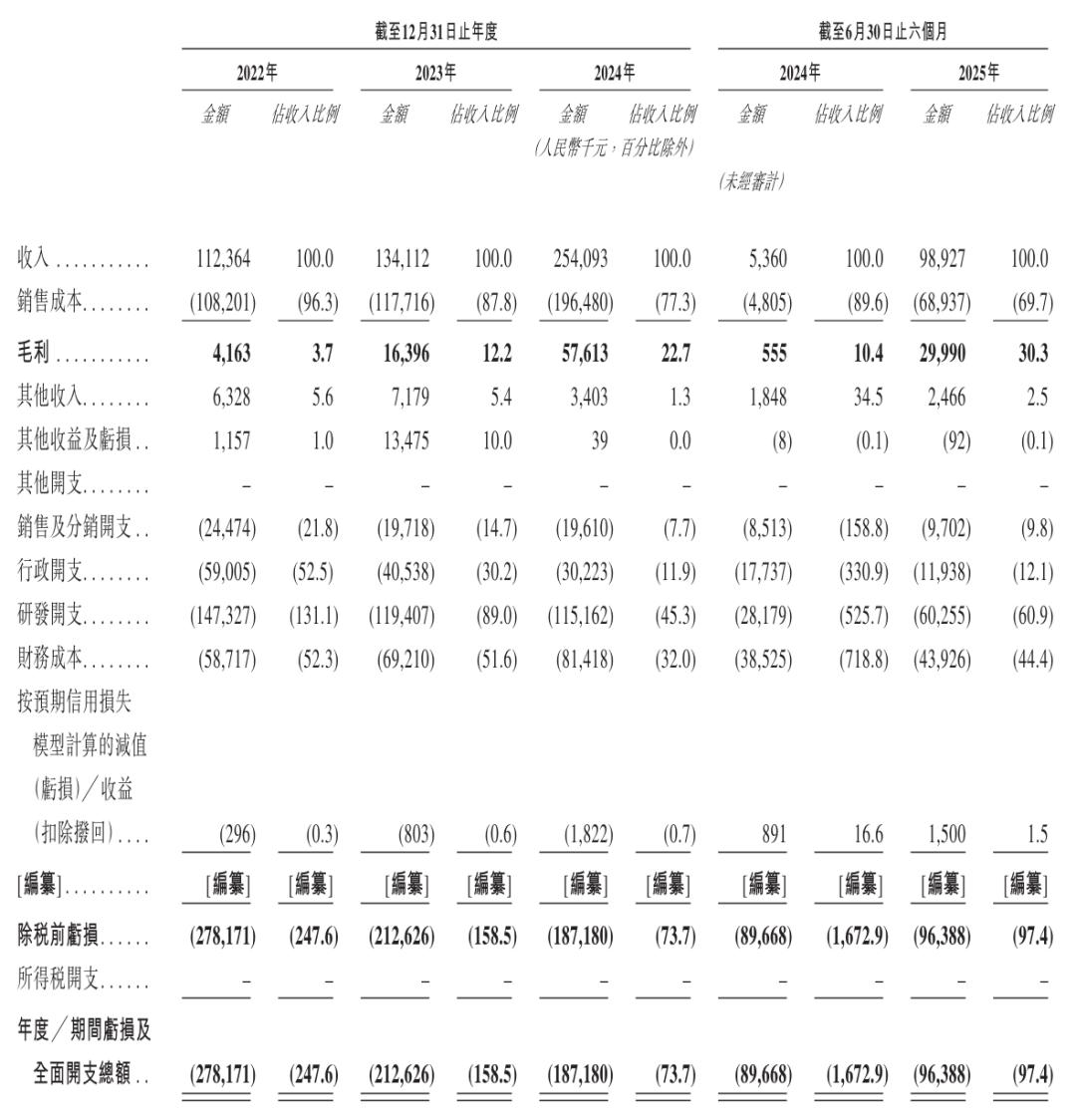 主线科技2025年上半年营收为9893万元,毛利为2999万元,毛利率为30.3%,期内亏损为9639万元,期内亏损率为97.4%。