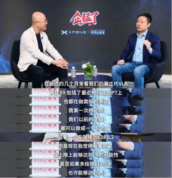 “我们以前的逻辑是可以做到一个好的L2,或者一个无限接近L3的L2,但现在我看到了上限能够达到L4的可能性,甚至如果多给我们3-5年,也许能够达到L5。”