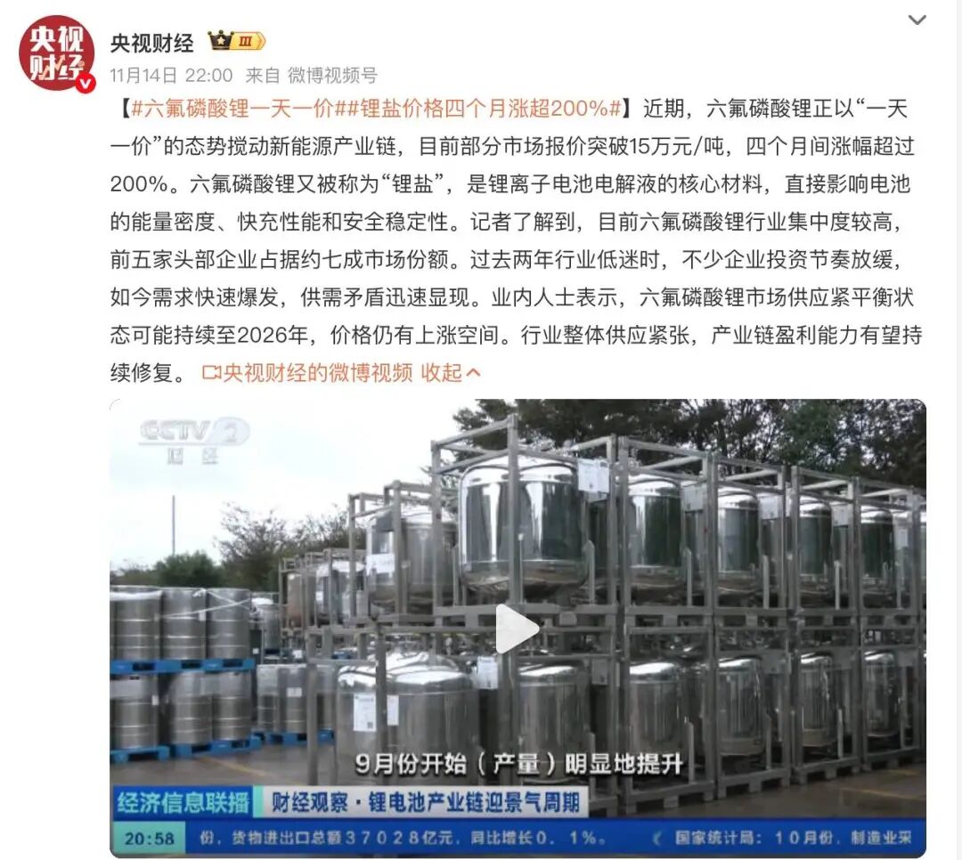 2025 下半年,沉寂已久的锂电原材料市场迎来结构性上涨。六氟磷酸锂价格两月翻倍,钴酸锂涨幅超 150%,电池级碳酸锂再度逼近 10 万元/吨关口。对于尚未形成如特斯拉、比亚迪般垂直整合规模的小米而言,原材料波动对利润率的冲击更为直接。
