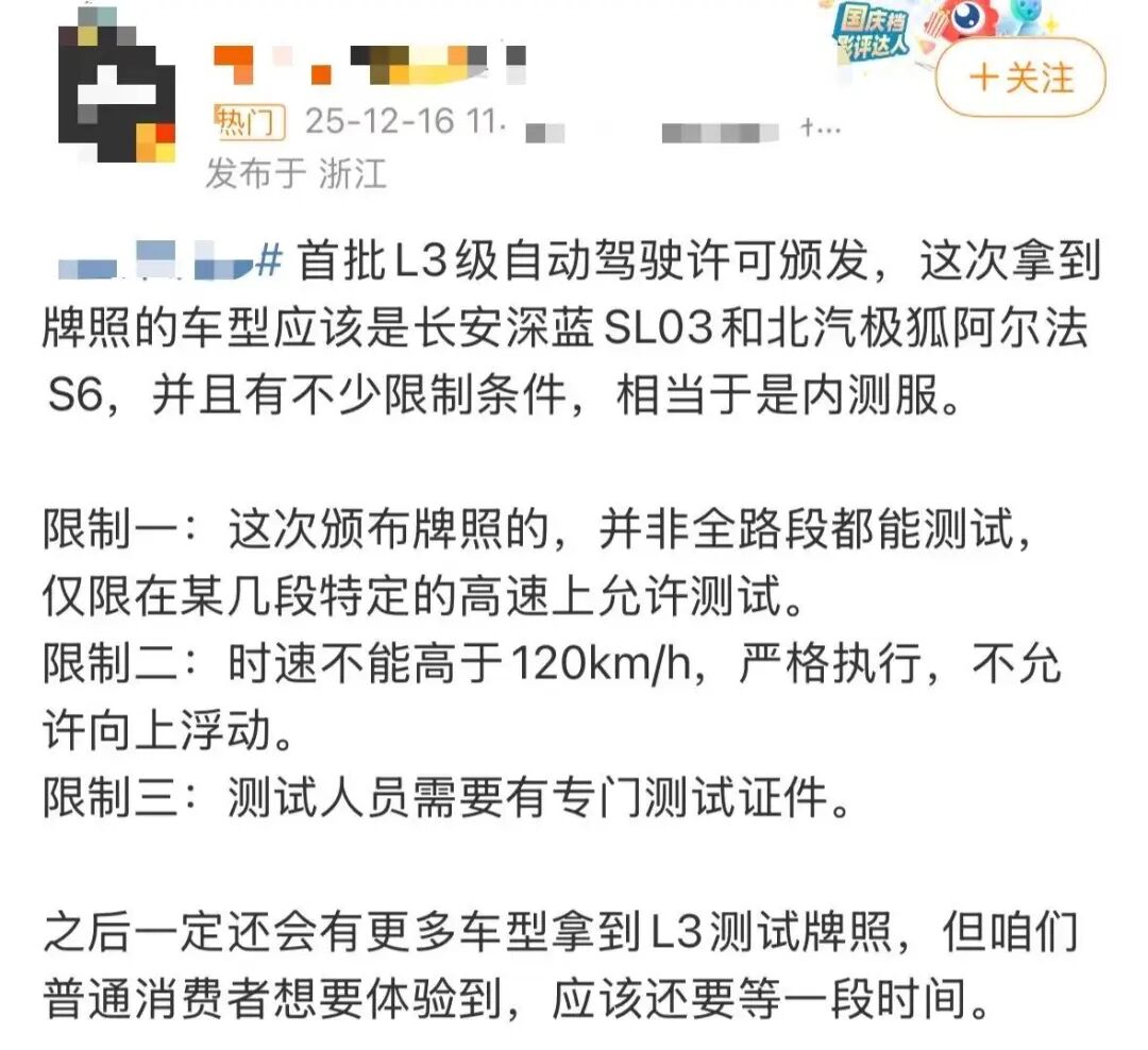 只不过安全必须要到位。这也是为什么从2023年底重庆、上海、北京发放首批L3测试牌照,到2025年工信部等八部门联合发布《汽车行业稳增长工作方案》,再到首批准入测试名单落地,整个流程走了近3年。