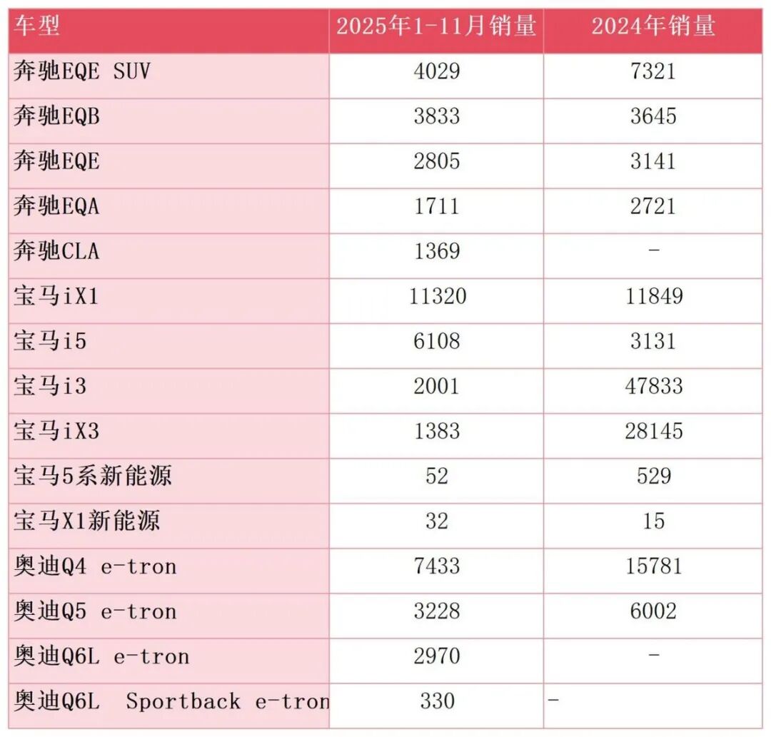 尽管BBA近期已在智能化、电动化领域展现出破局决心,接连推出多款重磅产品,但相较于燃油车时代的绝对统治力,其市场表现仍相去甚远。