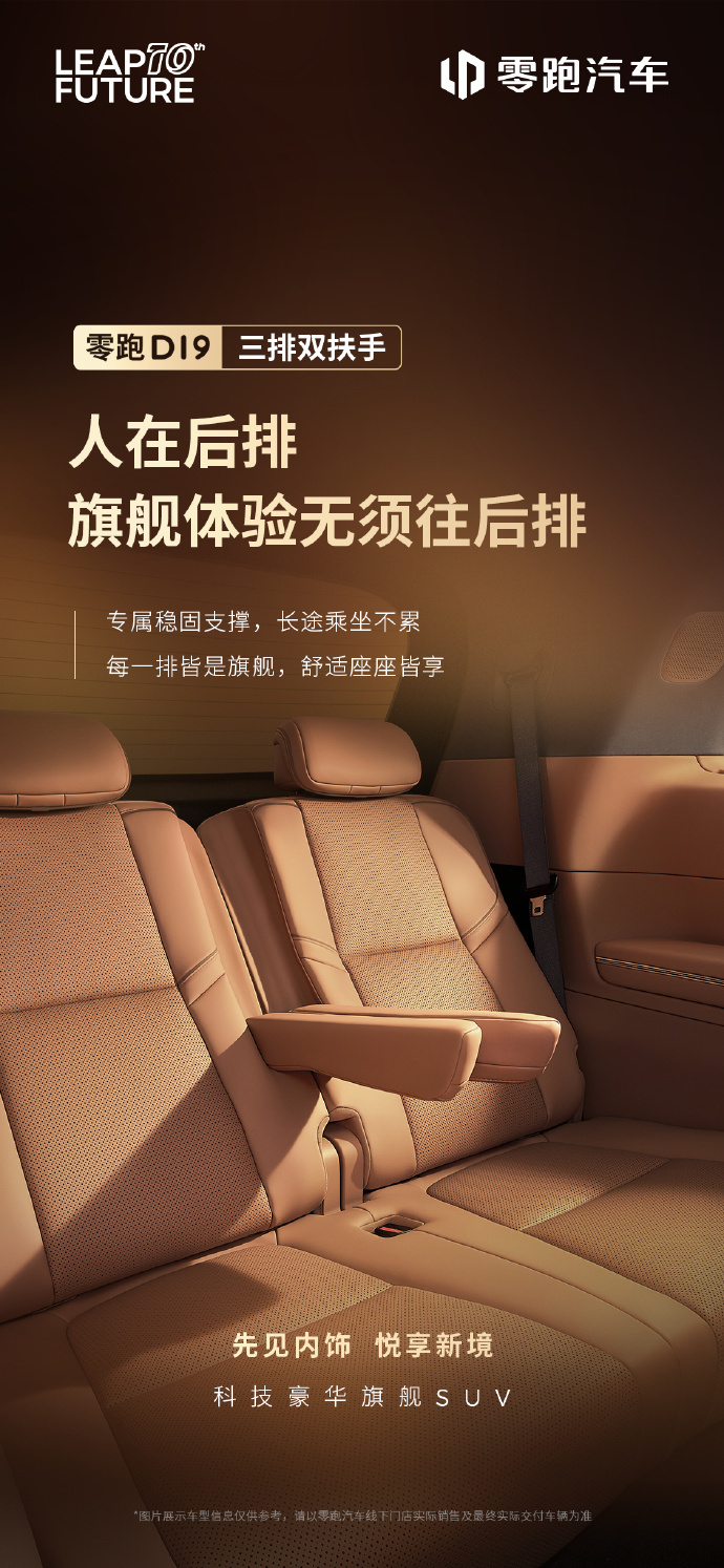 凤凰网科技讯 12月23日,零跑汽车继续公布旗下豪华旗舰SUV D19的部分内饰细节,包括三排全景视窗、三排双扶手以及B柱贴心拉手。此前公布的内饰细节包括4处柔光壁灯、360度旋转调节的航空阅读灯,以及3种浓度可调的智能定制香氛。