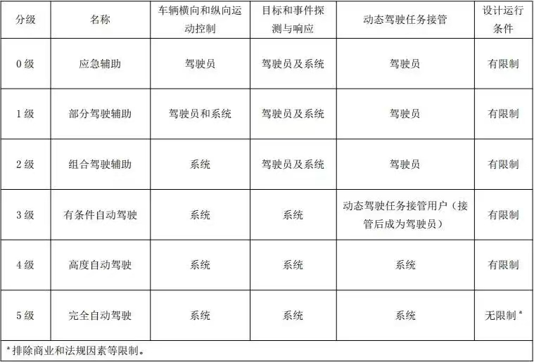 2022 年开始实施的《汽车驾驶自动化分级》国家标准,把中国的自动驾驶系统分为六个级别(L0-L5):