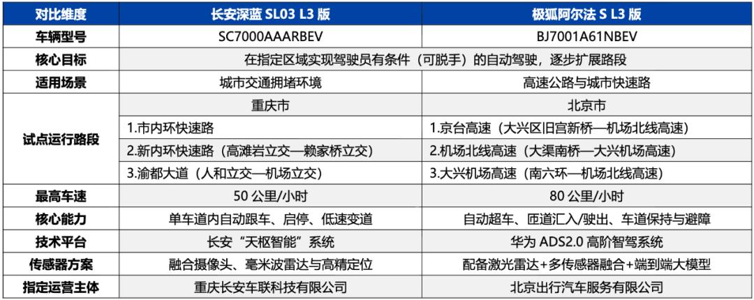 根据公告信息,长安牌SC7000AAARBEV型纯电动轿车(长安深蓝SL03 L3版)搭载自主研发的L3级系统,获准在交通拥堵环境下的高速公路和城市快速路单车道内,以最高50km/h的速度实现自动驾驶,功能开启路段明确限定在重庆市的部分快速路及干道。