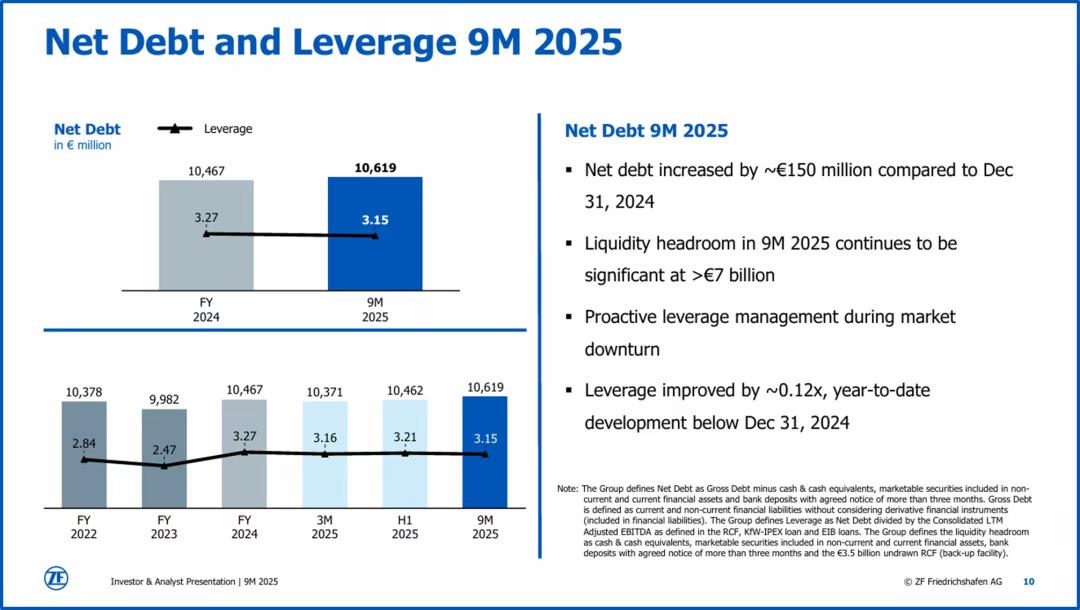 因为采埃孚终于有钱还债了,截至2025上半年,还背着约106亿欧元的巨额债务,此时的采埃孚财务捉襟见肘,用Mathias Miedreich的话来讲,集团的利润基本用于偿债。