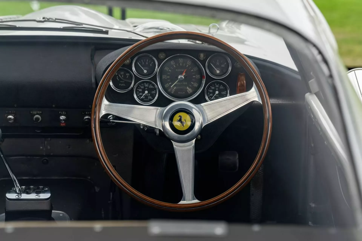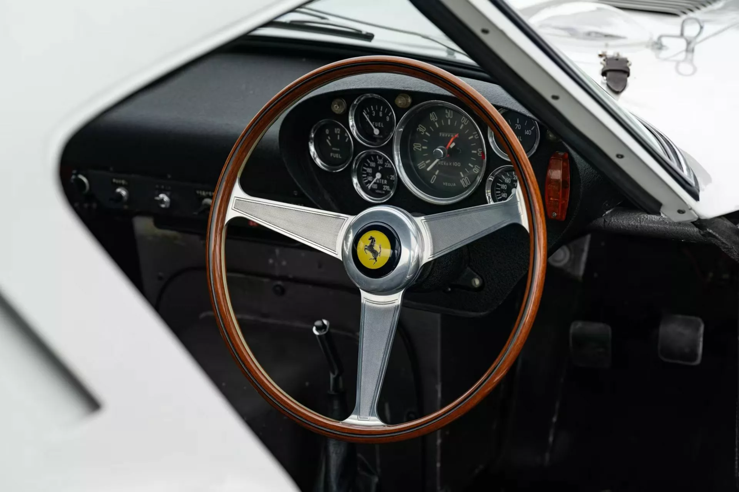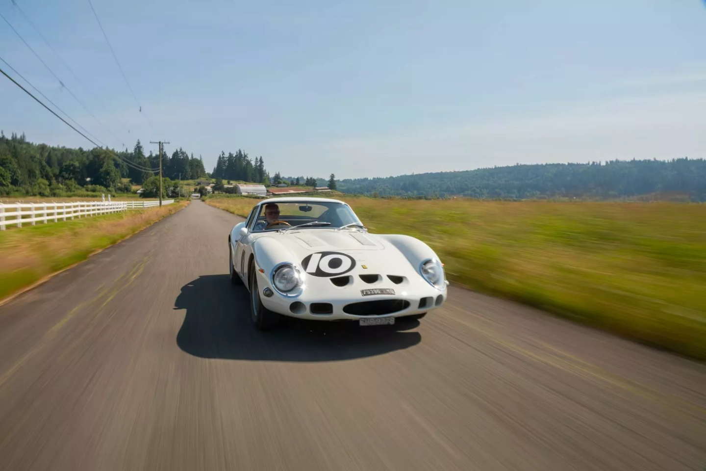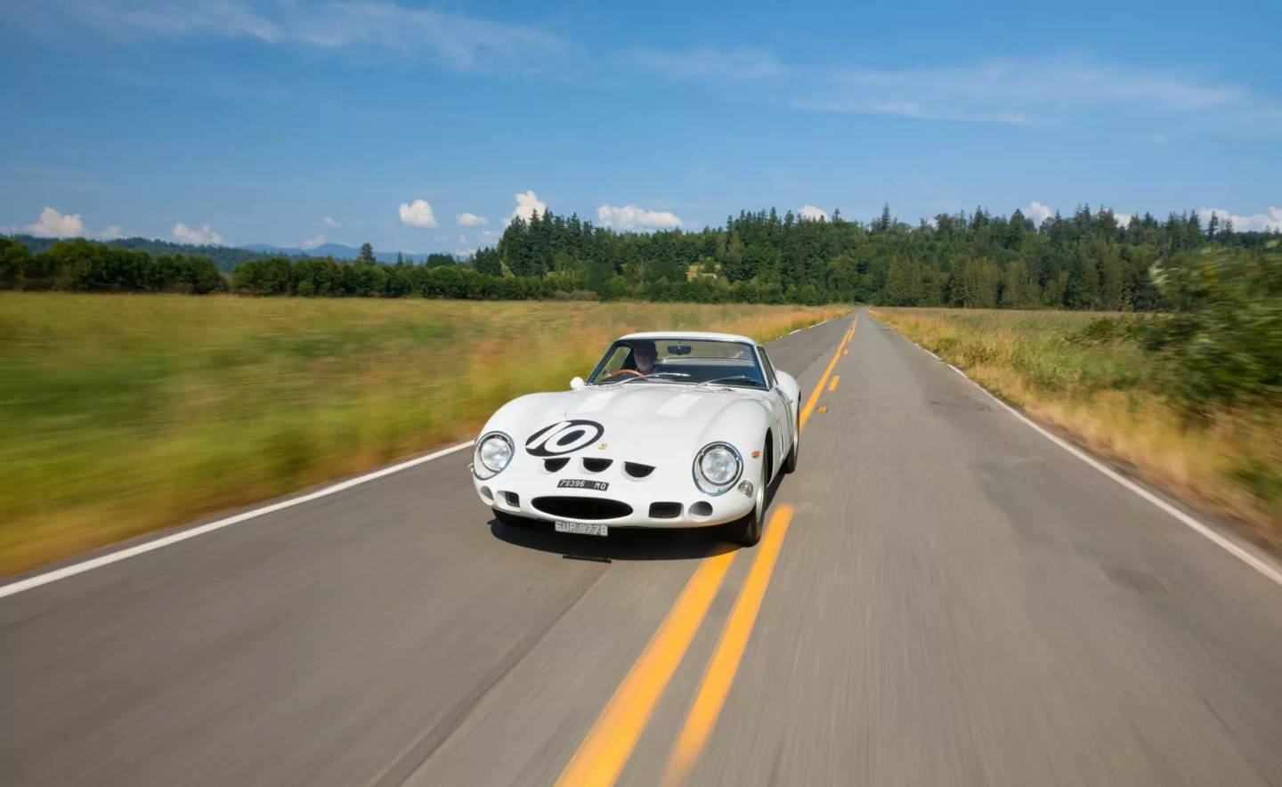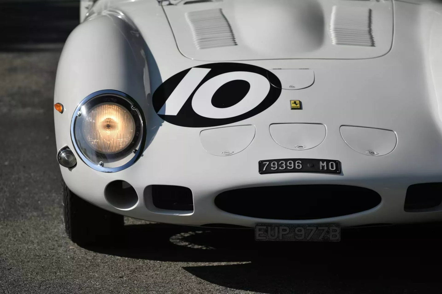 这辆白色 250 GTO 拥有深厚的赛道血统。该车首任车主为英国车队老板 John Coombs,曾由 Jack Sears、Graham Hill 和 Richie Ginther 等传奇车手驾驶。