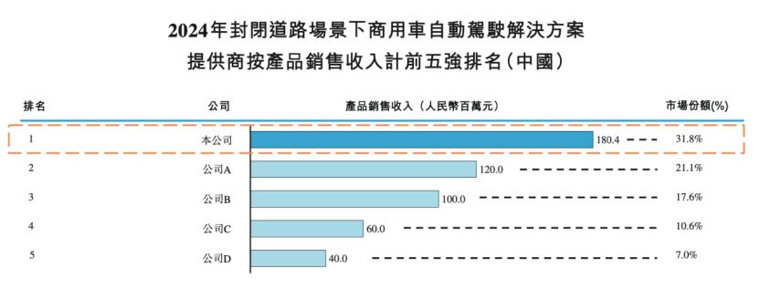 按2024年收入规模计算,主线科技已成为国内封闭场景商业化自动驾驶解决方案提供商中规模最大的公司,市场份额高达31.8%。