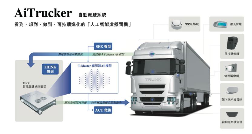 这套体系里,最关键的两块是:自动驾驶系统AiTrucker,以及面向公路物流的智能编队解决方案 Trunk CAFC。