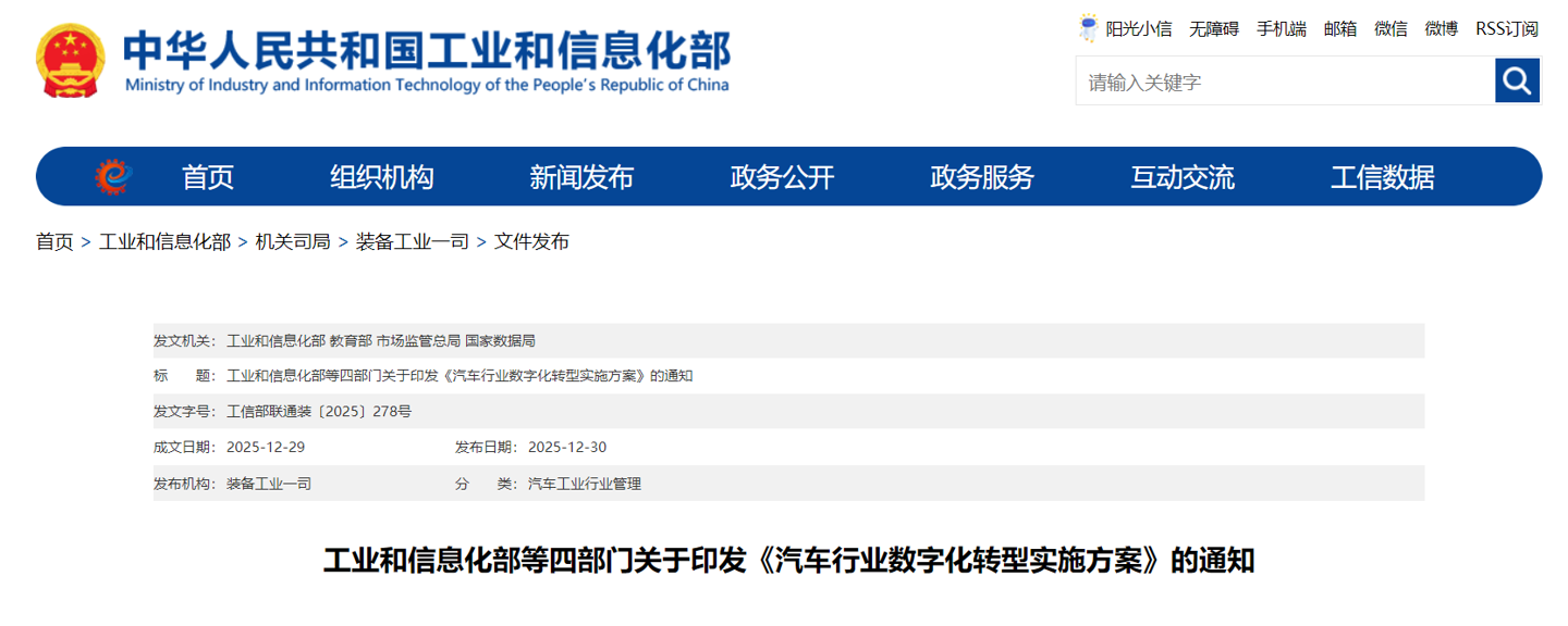 IT之家 12 月 30 日消息,工业和信息化部等四部门今日发布关于印发《汽车行业数字化转型实施方案》(下称《方案》)的通知。
