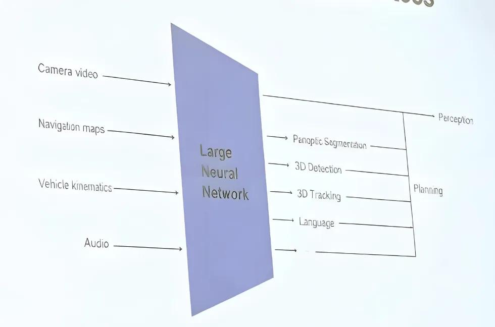 根据泄露的技术细节,FSD v14的神经网络不仅输出控制信号,还输出语言和3D空间重建。