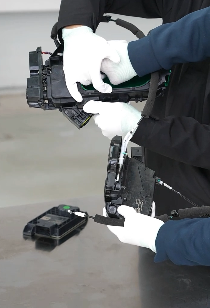 在遭遇碰撞后,小米 YU7 的外门锁将切换到机械设计,外部人员可通过机械开关打开车门。